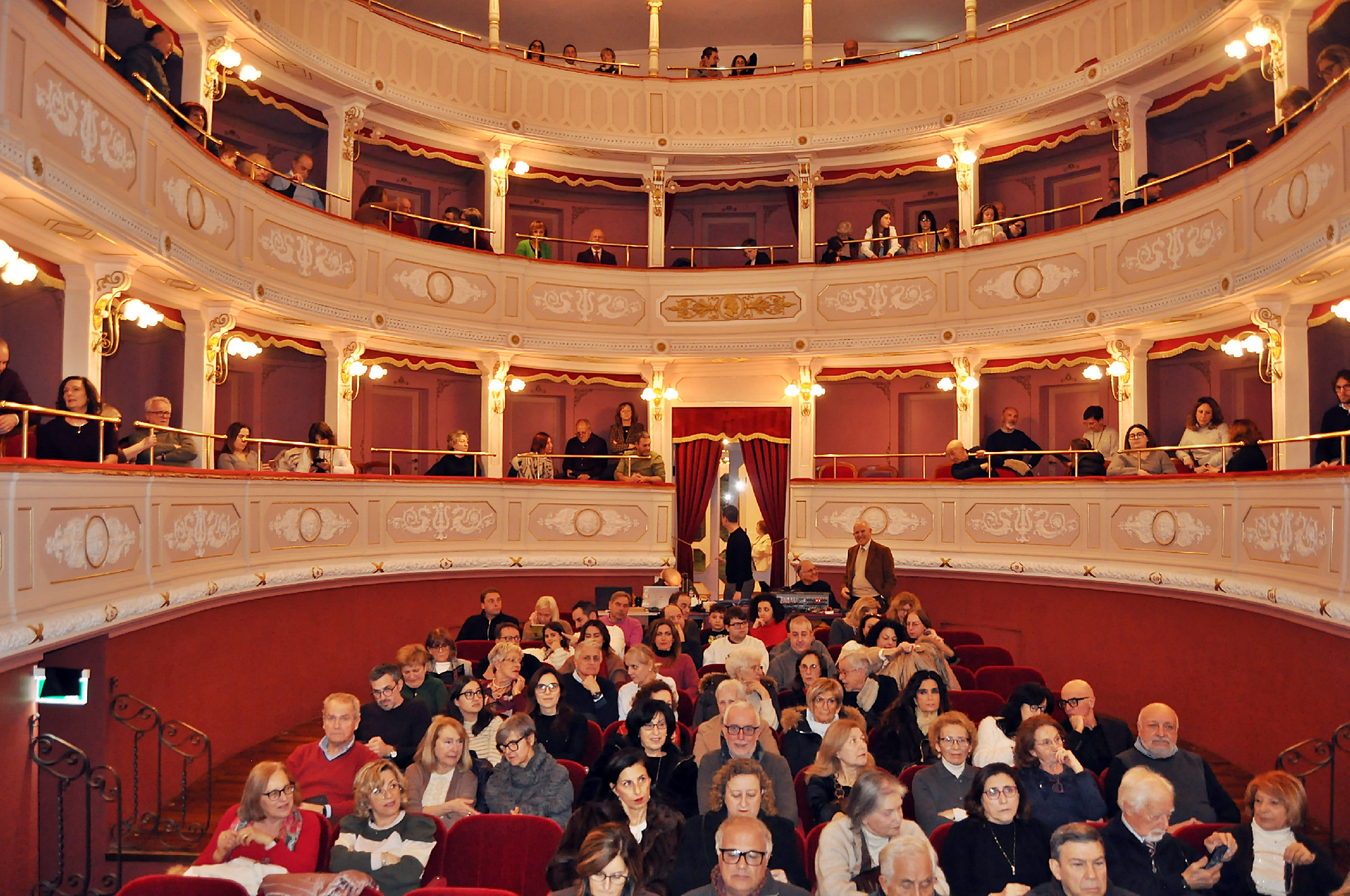 CALDAROLA – Il teatro di Caldarola, gestito dalla Compagnia Valenti di Treia, ha vissuto un fine settimana di successo, confermandosi un punto di riferimento culturale per tutto il territorio. I tre appuntamenti proposti in tre giorni hanno registrato un’ottima risposta di pubblico, arrivato non solo dai Cinque Comuni ma soprattutto da fuori, a dimostrazione della capacità del teatro di attrarre e coinvolgere un’area ben più ampia. Il weekend si è aperto venerdì sera con il primo Caffè Letterario del 2026 in trasferta, ospitato al Giardino delle Farfalle di Cessapalombo. Protagonista della serata è stato Tobias Giacomazzi con il suo albo illustrato “Voglio andare senza rotelle!” (Kalandraka Italia, 2025), finalista al XVII Premio Internazionale Compostela per Albi Illustrati. Un incontro apprezzato da adulti e bambini, reso ancora più accogliente dalle tisane offerte dall’Erboristeria Il Mondo delle Erbe di Tolentino. Sabato sera il teatro di Caldarola ha ospitato lo spettacolo di danza “Anime di Fuoco”, fortemente voluto dalla gestione del teatro che ha scelto di scommettere sui giovani e sulla danza. Una scommessa vinta a giudicare dal pubblico e dalla sua soddisfazione. In sala è intervenuta anche la Sottosegretaria alla Presidenza della Giunta regionale, Silvia Luconi, che ha ribadito l’importanza di sostenere le associazioni giovanili, sottolineando come si tratti di realtà composte da giovani professionisti capaci di offrire proposte culturali di alto livello. La chiusura del weekend, domenica pomeriggio, ha segnato il debutto della seconda edizione della rassegna “Brillanti a Teatro”. In scena Rumors del Circolo di Piazza Alta di Sarnano che, non solo ha riempito il teatro, ma ha conquistato il pubblico con una commedia brillante e coinvolgente, capace di suscitare risate e applausi a scena aperta. Al termine dello spettacolo, grazie alla Pro Loco di Caldarola, molti spettatori si sono fermati nella Sala Tonelli per un aperitivo con le eccellenze locali. Proprio da quest’anno, infatti, per tutti gli spettacoli pomeridiani della rassegna è prevista un’apericena post-spettacolo, curata ogni volta da una Pro Loco diversa dei Cinque Comuni: il debutto è stato affidato alla Pro Loco “di casa”, mentre nei prossimi appuntamenti si alterneranno Belforte del Chienti, Camporotondo di Fiastrone, Cessapalombo e Serrapetrona. Prossimi appuntamenti: domenica 25 gennaio il teatro per ragazzi presenta “L’usignolo” alle 17 e venerdì 30 gennaio alle 21.15 Serena Abrami, Enrico Vitali e Giuseppe Franchellucci riportano nelle Marche il loro concerto poetico, un dialogo fra musica, parola e libertà. Biglietti su Liveticket.it
