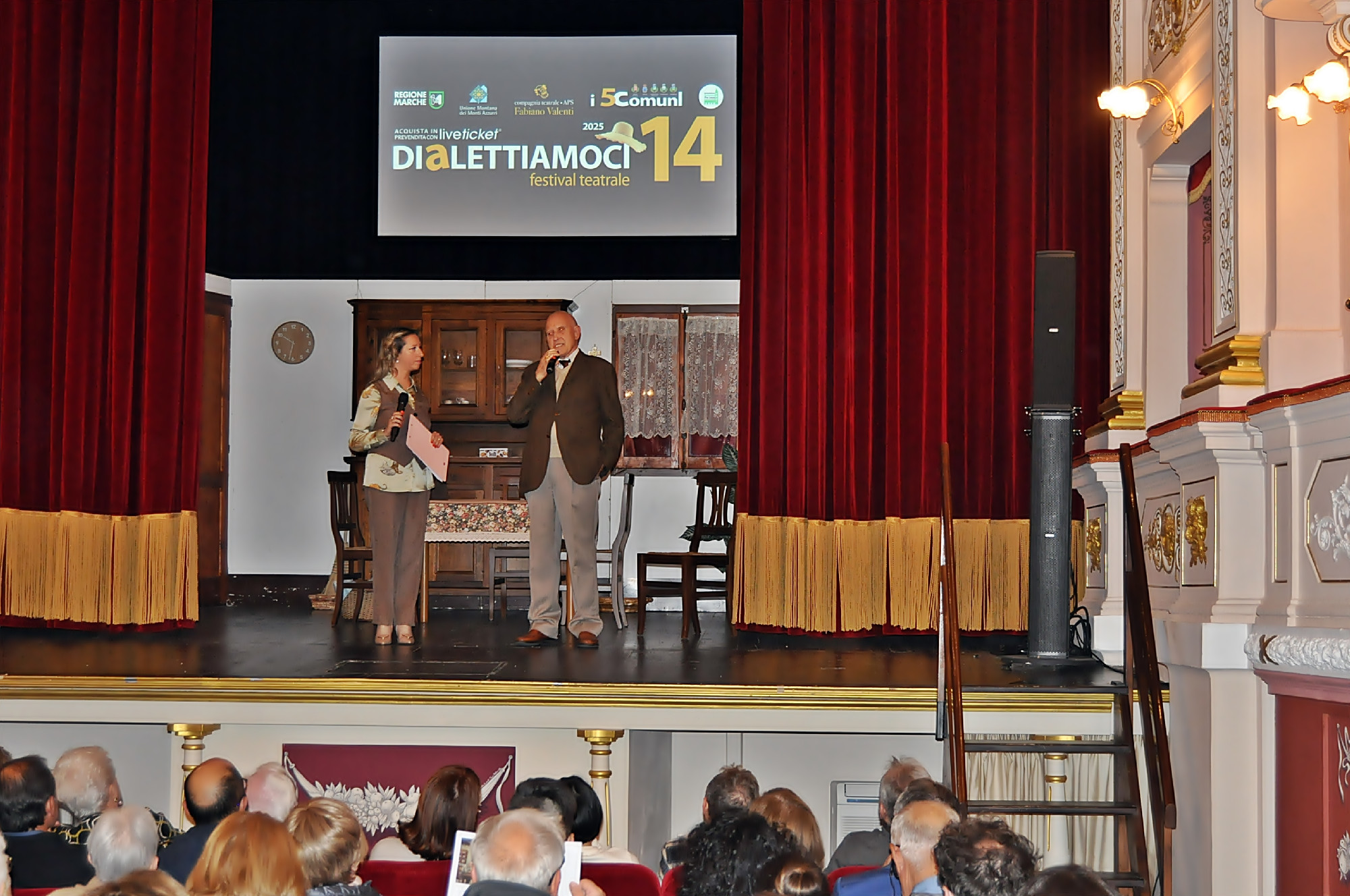 La commedia è inserita nel cartellone di Dialettiamoci, quattordicesima edizione del festival nazionale di teatro dialettale, organizzata dalla Compagnia Teatrale Valenti e dall’amministrazione comunale di Caldarola, unitamente ai Comuni di Belforte Del Chienti, Camporotondo di Fiastrone, Cessapalombo e Serrapetrona.
